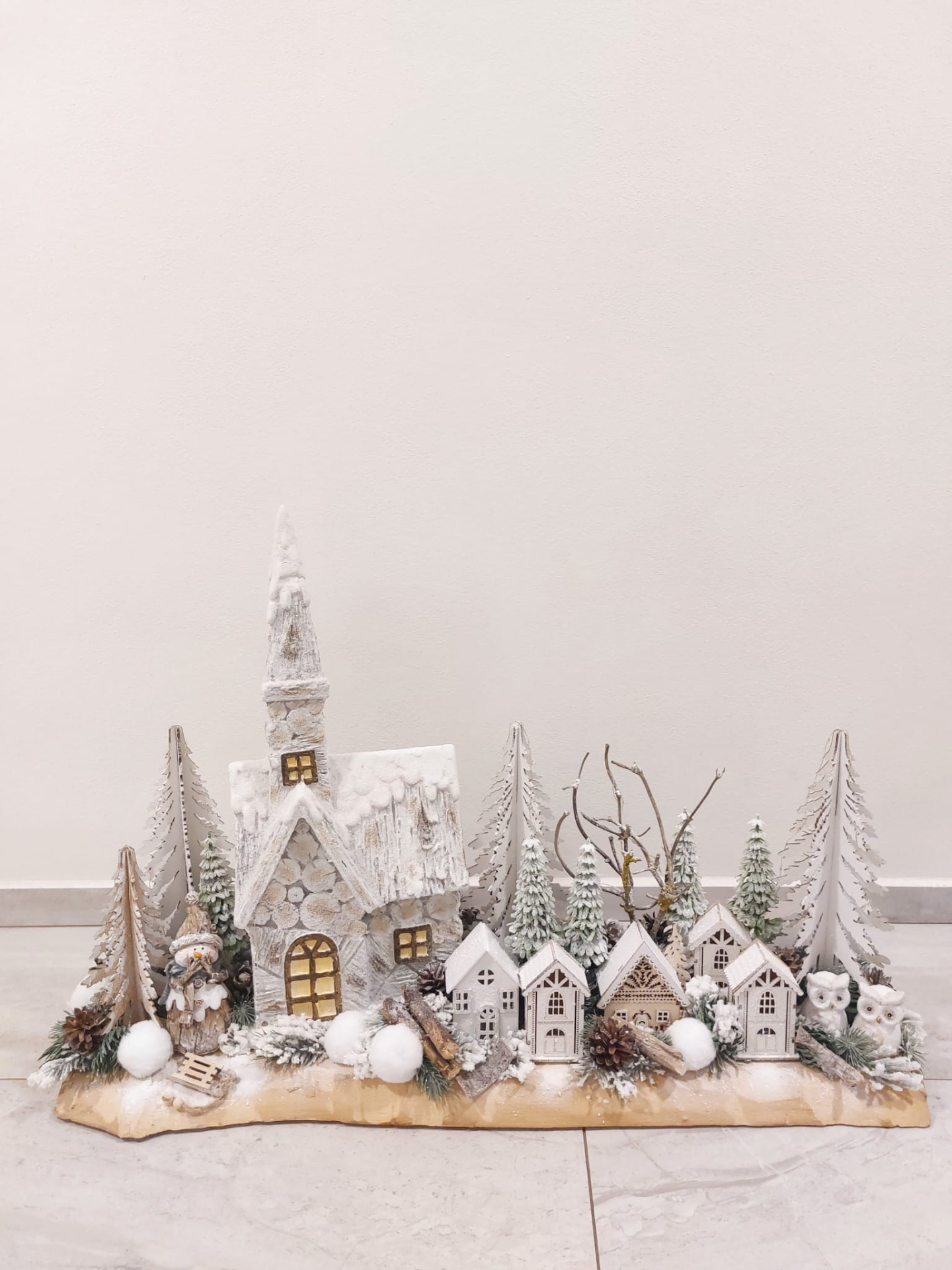 Zimní vesnička na masivním jasanovém dřevě